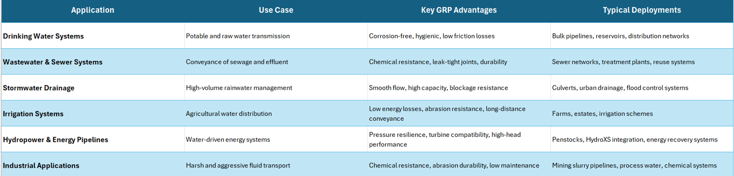 For infrastructure such as the Pungwe–Mutare conveyance system and similar gravity-fed bulk pipelines, GRP is particularly suited due to its ability to withstand variable pressures, aggressive water chemistries and challenging terrain conditions without degradation over time.